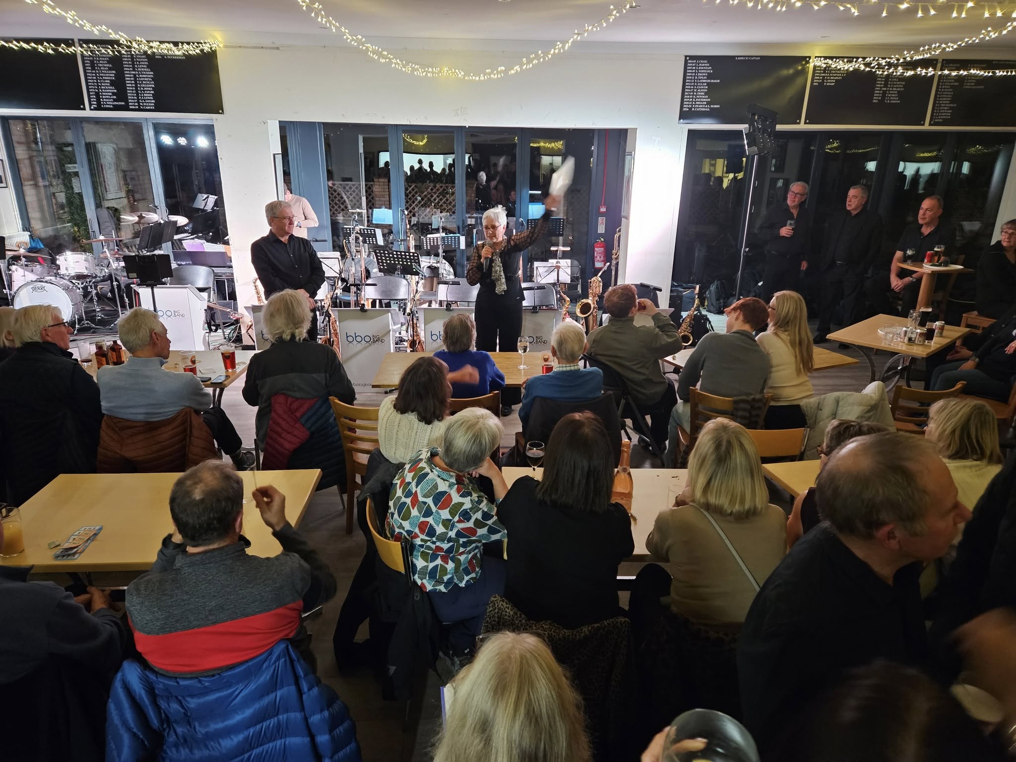Our own Rachel Kelly received the money on behalf of the charity from band leader Adam Linnell.